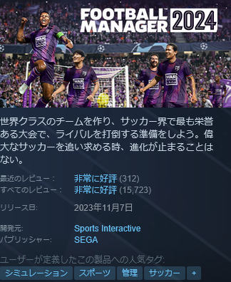 その一方でゲームの継続性があってDLC頼みではない構造を持っているのが「FM」の「EA FC」に対するゲームの優位性だ。バランス配慮の匙加減というよりかはゲームのシミュレーションの大局的性質に特化しているのが「FM」最大の特徴であるわけ。まだグラフィックスを初めとしてアクション要素に徹するだけでないからシミュレーションとして外部要素を取り込んでいけば「FM」のほうはまだまだ伸びしろがある。求める体験が監督業やGM業になっているからこそシミュレーションの快感に浸れるという点で「EA FC」より楽しみの度合いがデカいともいえる。だからこそ「FM」は高い評価を得ているんだ。